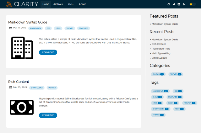 A theme based on VMware's Clarity Design System for publishing technical blogs with Hugo.