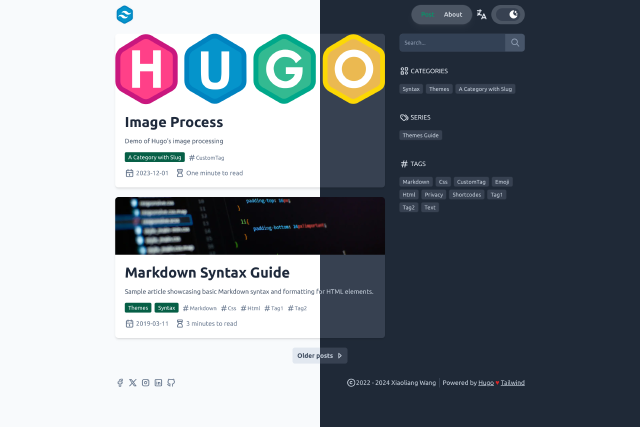 Clean card Hugo theme for blog, created by using tailwindcss