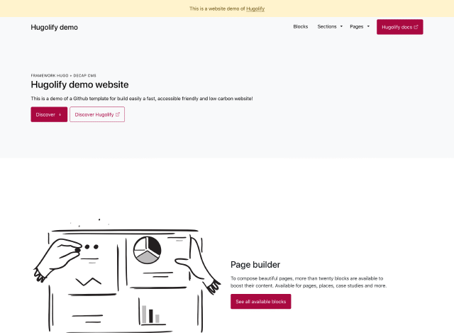 Hugolify core theme, containing best practices in accessibility and eco-design, as well as around twenty blocks and shortcodes.